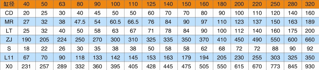L:油口連接方式代號 L=內螺紋連接(用于缸徑D≤220);F=法蘭連接(用于缸徑≥250)
