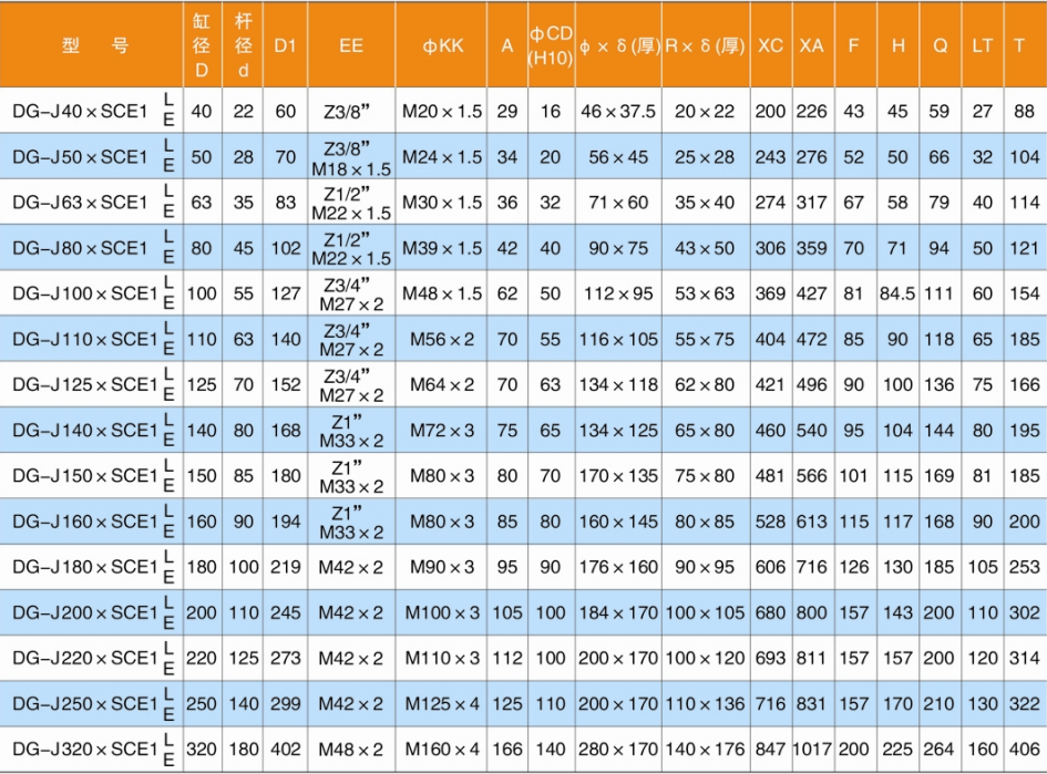 L:活塞桿連接方式代號 L=螺紋連接;E=耳環連接